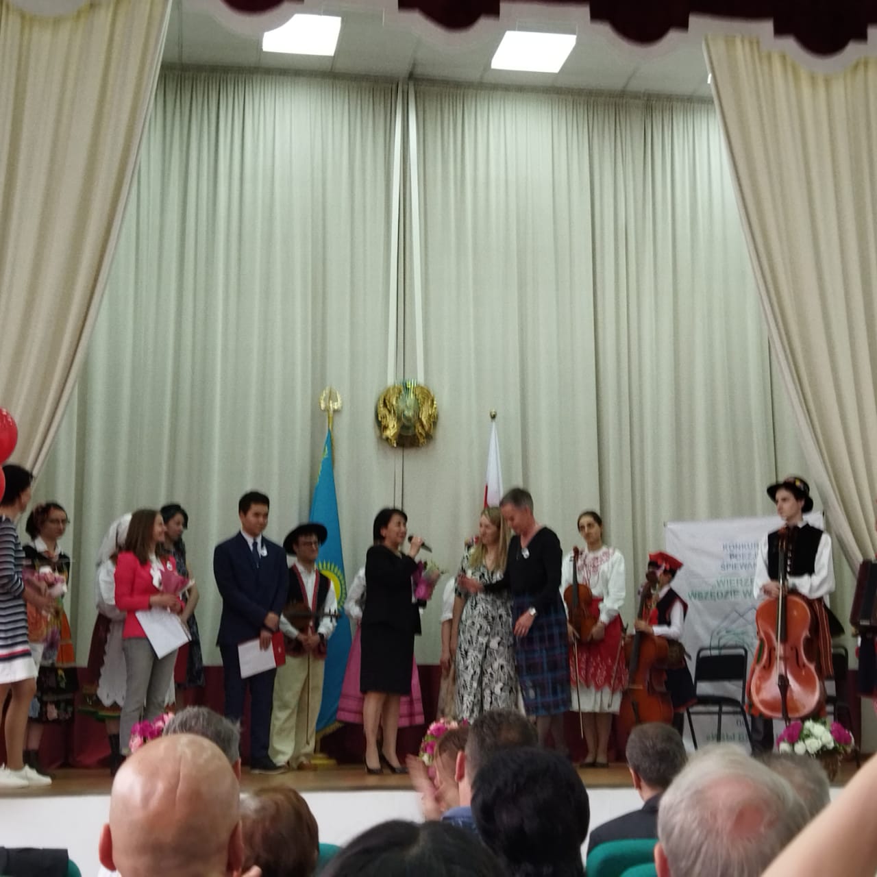 Wszyscy przygotowali ciekawe interpretacje utworów poetyckich, z których większa część została zaprezentowana konkursowej widowni. Organizatorom imprezy, która odbyła się 30 kwietnia w auli Gimnazjum nr 23, zależało, aby tegoroczny Konkurs, który szczęśliwie przypadł już na czasy „popandemiczne”, odbył się nie tylko „na żywo”, ale stał się w życiu ałmatyńskiej Polonii znaczącym i prestiżowym wydarzeniem. Licznie zgromadzoną publiczność stanowili nauczyciele, uczniowie, ich rodzice oraz przedstawiciele Polonii. Uroczystość zaszczycili swoją obecnością przedstawiciele Konsulatu Generalnego w Ałmaty: pan konsul Marek Strześniewicz i pani konsul Anna Gogolińska, dyrektor Gimnazjum nr 23 pani Saida Sundetowa oraz działacze Centrum Kultury Polskiej „Więź” z panią prezes Marianną Temraliewą na czele. Gościem specjalnym był zaproszony przez nauczycieli z Polski Zespół „Promyki Krakowa”. To przede wszystkim dzięki „Promykom” i ich wspaniałemu koncertowi, uświetniającemu finał Konkursu, uroczystość z 30 kwietnia miała wyjątkowy charakter.