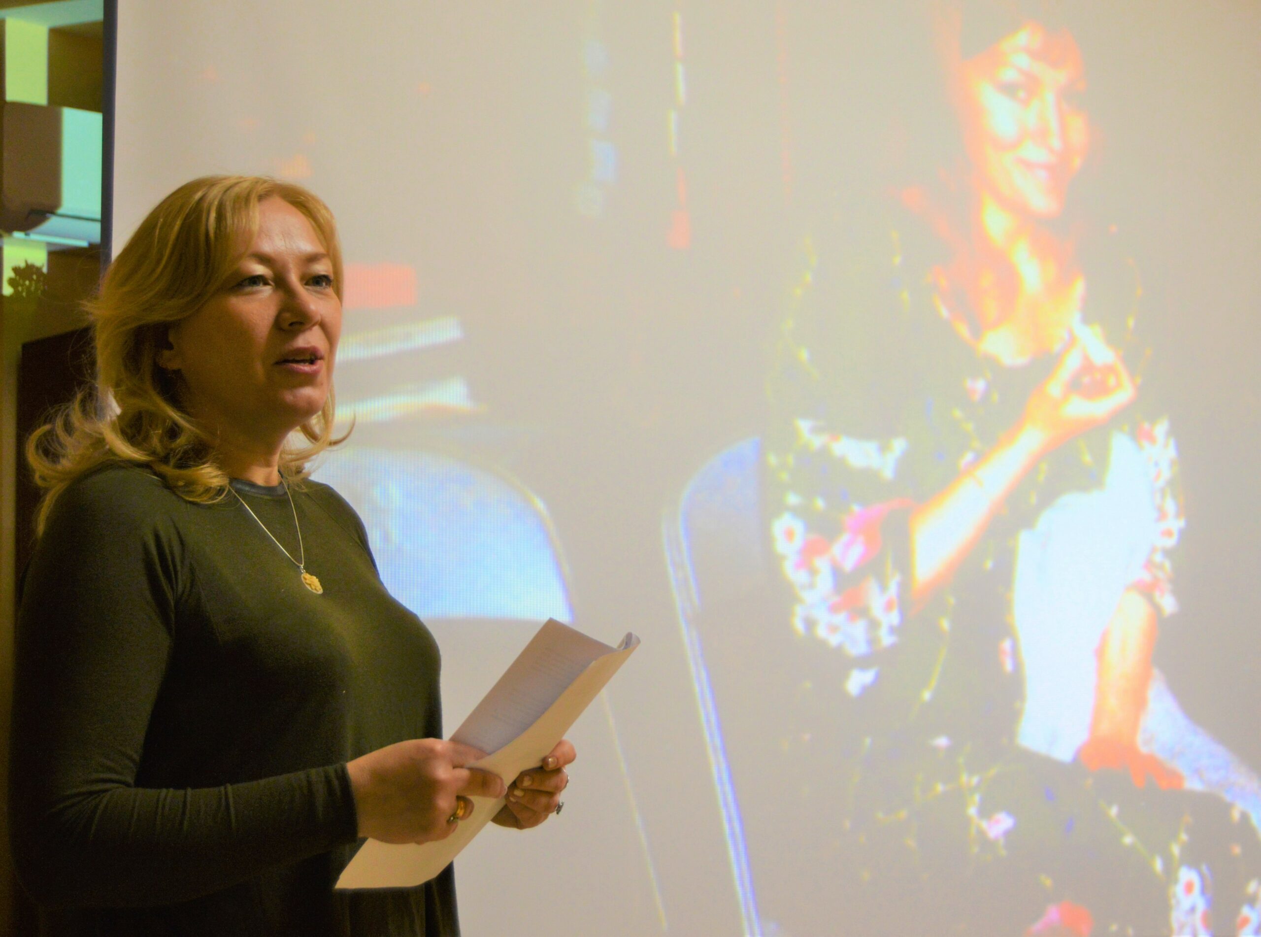 Niezwykle interesujące okazały się informacje znane tylko biografce Anny German – Olganie Nafikowej, którymi dzieliła się z uczestnikami spotkania. Pokazała archiwalne nagrania, opowiedziała o piosenkarce w roli matki i żony, przytoczyła też jej słowa z najważniejszych momentów życia. Podkreśliła również rolę matki Anny German – Irmiry, która zaopiekowała się małym Zbyszkiem po śmierci artystki. Olgana Nafikowa przeprowadziła też konkurs ze znajomości twórczości bohaterki wieczoru. Zwycięzcy otrzymali pamiątkowe przypinki z Polski przedstawiające kwiaty – motyw przewodni wieczoru.