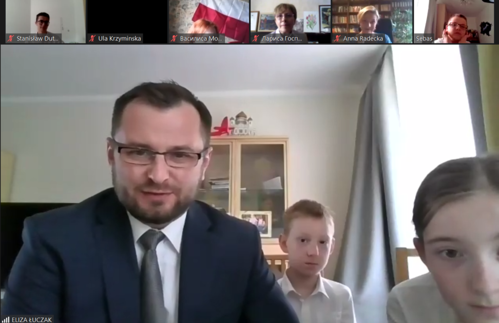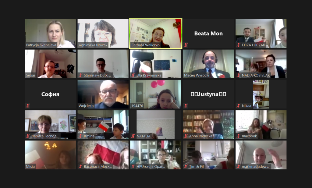 15 maja br. w Szkole Polskiej przy Ambasadzie RP w Moskwie na platformie Zoom odbyła się lekcja otwarta poświęcona obchodom 230. rocznicy uchwalenia Konstytucji 3 Maja. Miała ona charakter wyjątkowy, bowiem uczestniczyli w niej wyjątkowi i dostojni goście: Zastępca Ambasadora RP w Federacji Rosyjskiej Pan Jacek Śladewski, Kierownik Wydziału Konsularnego przy Ambasadzie RP w Moskwie Konsul Sławomir Łuczak, Radca, dr inż. Radosław Ocieczek, Dyrektor Ośrodka Rozwoju Polskiej Edukacji za Granicą Pani Anna Aleksandra Radecka, Wicedyrektor ORPEG Pani Justyna Kralisz, Prezes Stowarzyszenia „Rodzice szkole” Pan Wojciech Starzyński oraz Kierownik Szkoły Polskiej im. Sándora Petőfiego przy Ambasadzie RP w Budapeszcie Pani Beata Mondovics z uczniami.