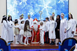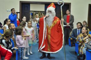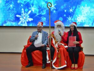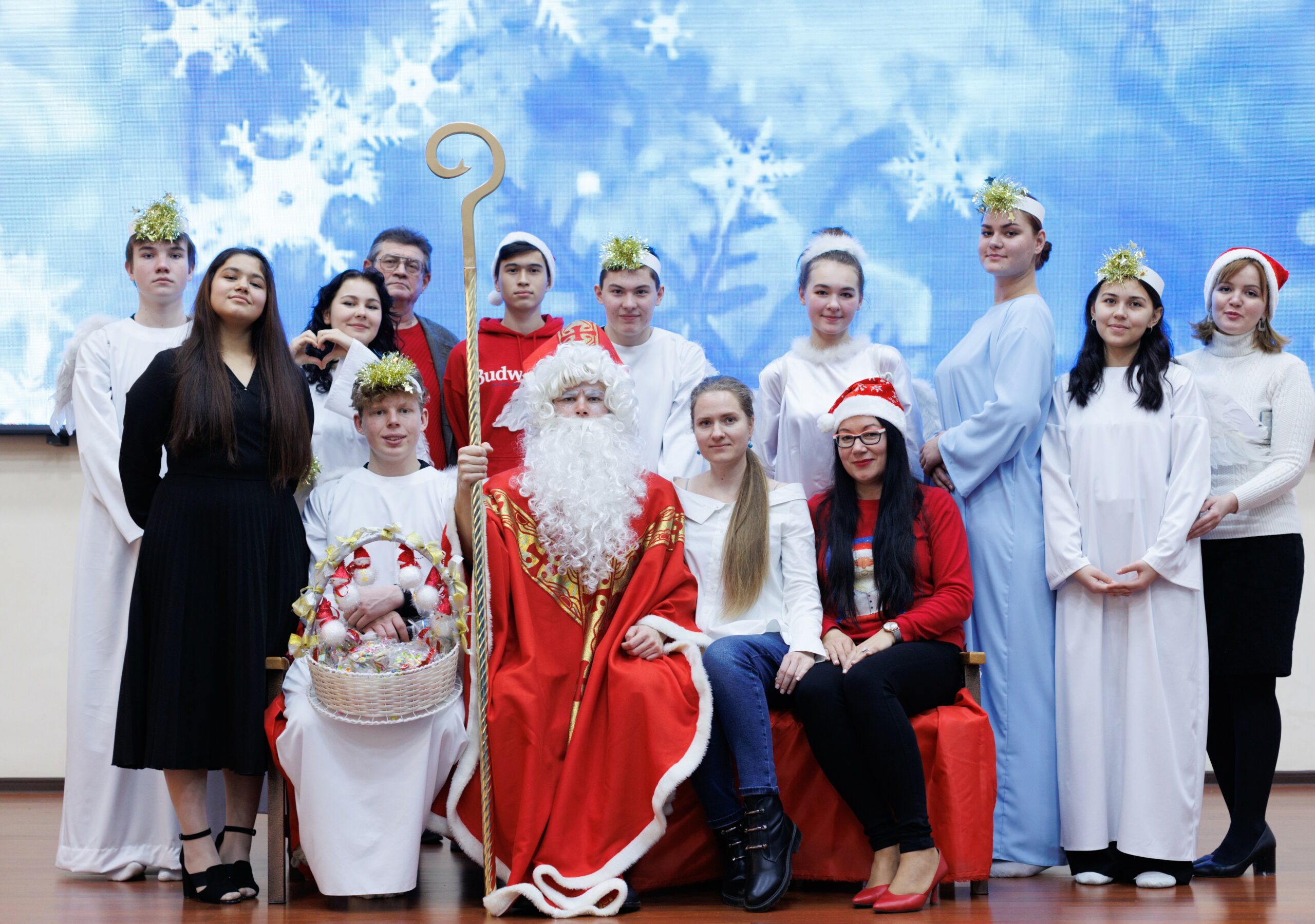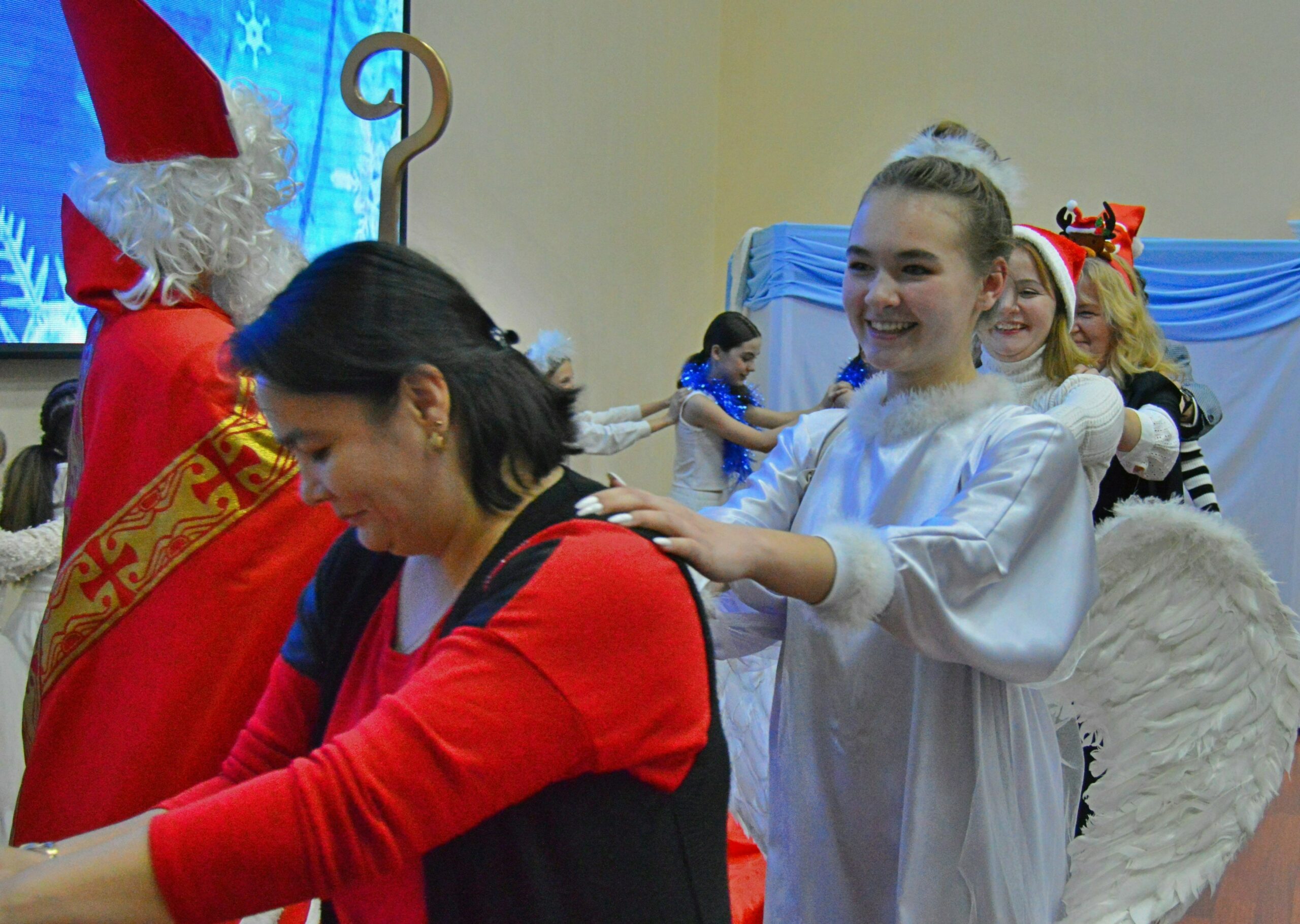 W jego rolę wcielił się Denis Sotnikow, który powitał dzieci i ich rodziców polską kolędą „Przybieżeli do Betlejem pasterze”. Następnie zaprosił do wesołych zabaw, by na koniec rozdać prezenty. Nie byłoby ich, gdyby nie Ambasada RP w Taszkencie, która ufundowała słodkie podarunki.