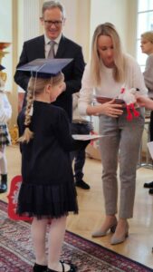 Po pięknym przedstawieniu, które z uczniami przygotowała wychowawczyni klasy pierwszej, pani Ewelina Fialova, odbyło się uroczyste pasowanie na ucznia szkoły. Ogłoszono zwycięzców szkolnych konkursów i rozdano nagrody. Szczególnym momentem było symboliczne wręczenie polskiego obywatelstwa czesko-polskiej rodzinie, przez Konsula RP w Pradze pana Artura Łukiańczuka.