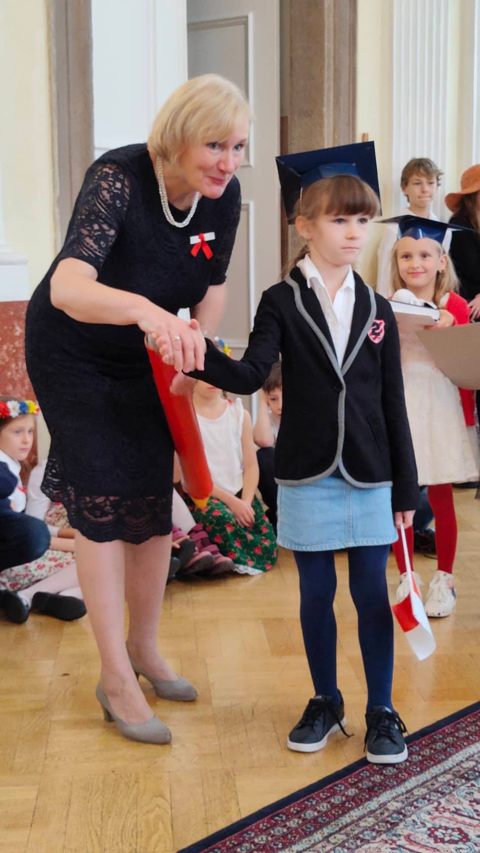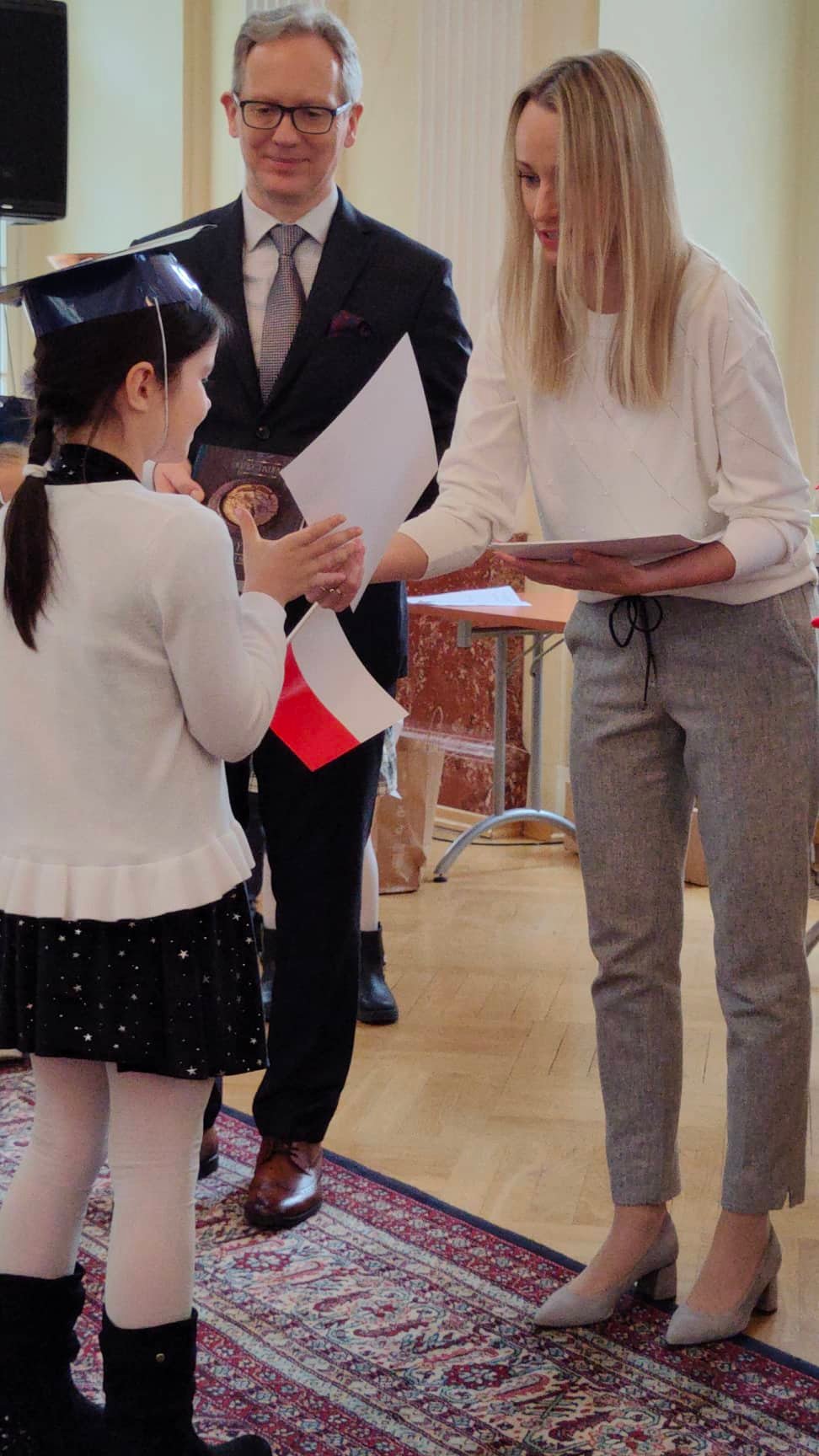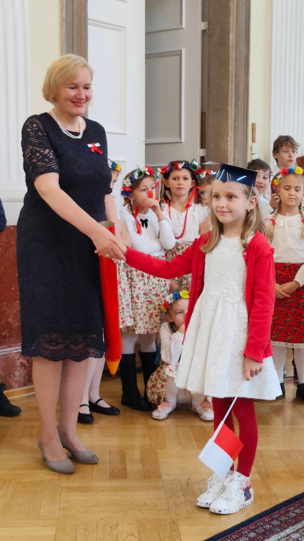 Po pięknym przedstawieniu, które z uczniami przygotowała wychowawczyni klasy pierwszej, pani Ewelina Fialova, odbyło się uroczyste pasowanie na ucznia szkoły. Ogłoszono zwycięzców szkolnych konkursów i rozdano nagrody. Szczególnym momentem było symboliczne wręczenie polskiego obywatelstwa czesko-polskiej rodzinie, przez Konsula RP w Pradze pana Artura Łukiańczuka.