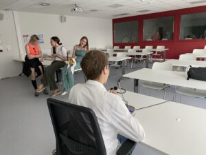 Uczniowie z SHAPE otrzymali od belgijskich kolegów zadanie konsekutywnego tłumaczenia wystąpienia z angielskiego oraz francuskiego na język polski. W rolę jury oceniającego jakość pracy wcieliła się Dominika Gryciuk, polska studentka włosko-angielskiej kombinacji językowej na UMONS. Najwięcej emocji wzbudziła wizyta w specjalistycznym laboratorium tłumaczeniowym oraz praca w kabinie tłumacza. Tym razem licealiści podjęli się tłumaczenia w drugą stronę, tj. z polskiego na języki obce.