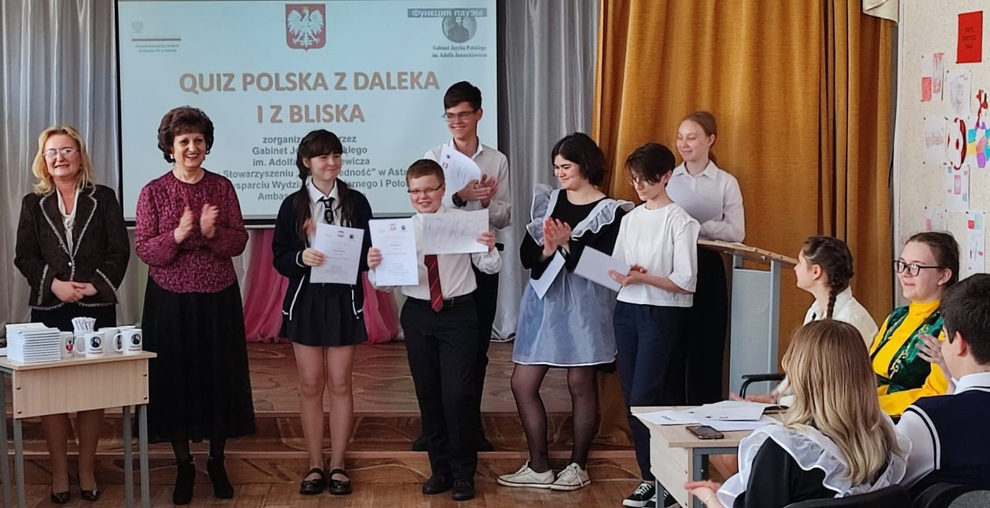 Wydarzenie pozwala podkreślić, jak istotne w dzisiejszym czasie są przyjaźń i współpraca. Dziś połączył nas quiz „Polska z daleka i z bliska”, w którym wzięli udział uczniowie klas od 5 do 11, a który odbył się przy wsparciu Wydziału Konsularnego i Polonii Ambasady Rzeczypospolitej Polskiej w Astanie i przy działającym w placówce edukacyjnej Gabinecie Języka Polskiego im. Adolfa Januszkiewicza, w którym pracuje nauczyciel skierowany przez ORPEG.