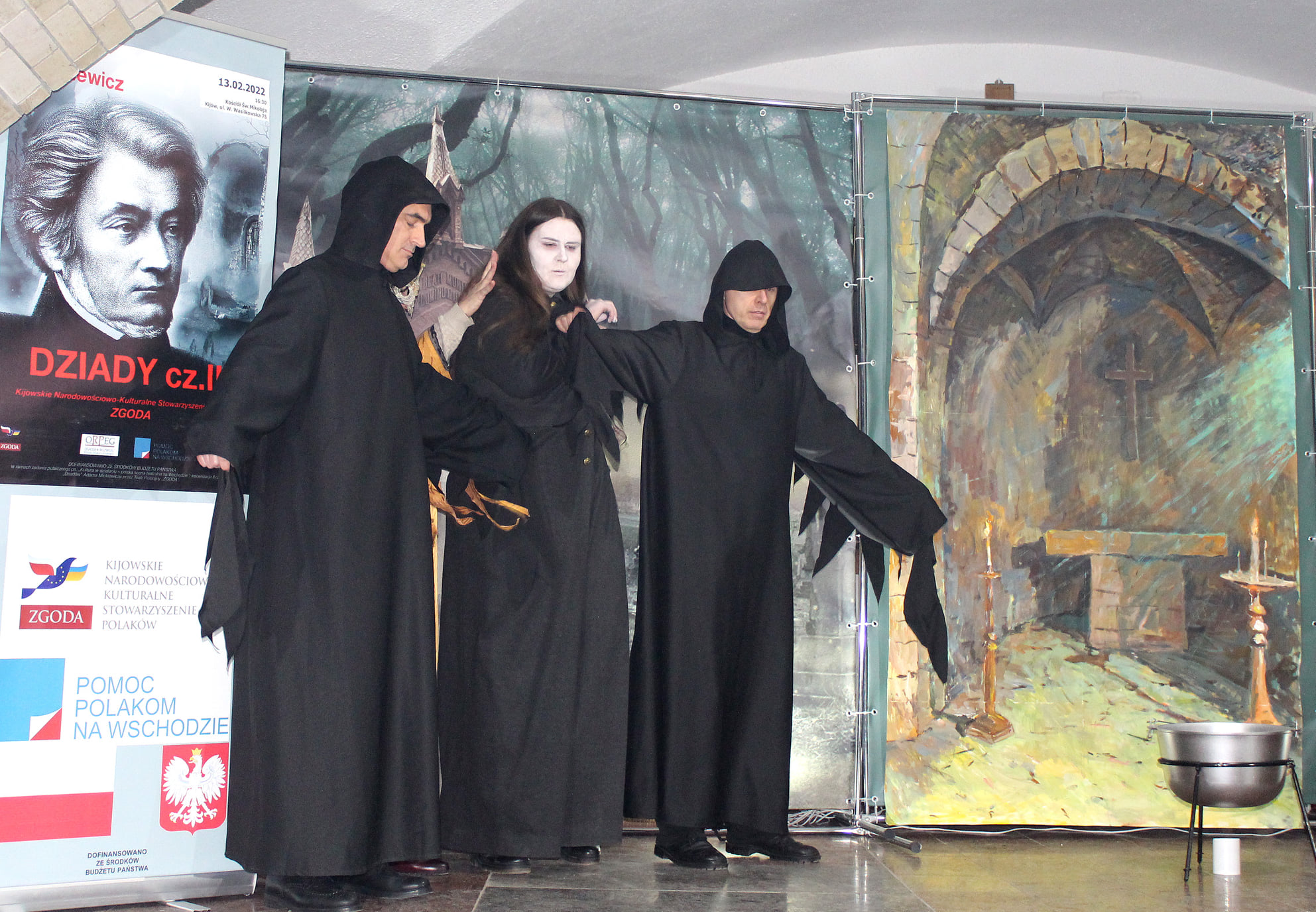 Czwarty z rzędu spektakl pt. „Dziady” (cz. II) na podstawie dramatu Adama Mickiewicza, przygotowany przez artystów Teatru ZGODA, działającego przy Kijowskim Narodowościowo-Kulturalnym Stowarzyszeniu Polaków „Zgoda”, odbył się 13 lutego br. w Kościele św. Mikołaja w Kijowie.