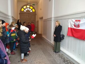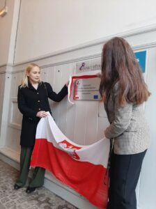 Odsłonięcia tablicy dokonała Pani Konsul Małgorzata Dąbecka wraz z kierownik szkoły Panią Dorotą Schrieder.