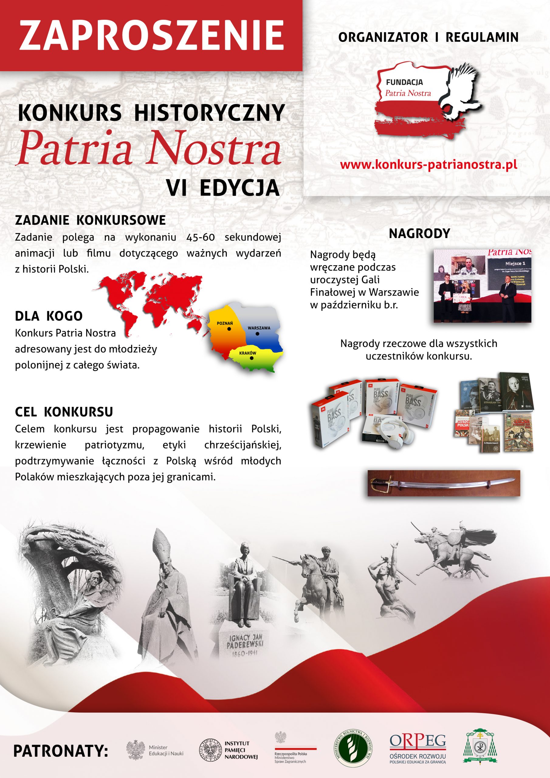 Wszelkie informacje oraz materiały dostępne na stronie internetowej: https://konkurs-patrianostra.pl/edycja-vi-konkurs-swiatowy-2021