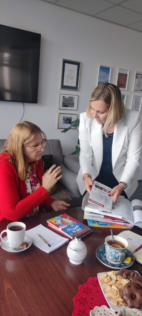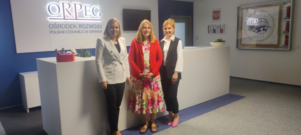 W dniu 3 sierpnia 2023 r. w siedzibie ORPEG w Warszawie gościliśmy p. Marię Ciupalską – Prezes Polskiej Macierzy Szkolnej w Argentynie. Panie Dyrektor oraz Wicedyrektor ORPEG – Justyna Kralisz i Magdalena Kostecka – omówiły współpracę z Panią Prezes w zakresie wsparcia metodycznego nauczycieli, szkoleń i warsztatów wspierających metodykę nauczania. Podczas tego owocnego spotkania przedstawicielki władz ORPEG przekazały na ręce kierującej Polską Macierzą Szkolna w Argentynie podręczniki dla uczniów, pomoce dydaktyczne dla nauczycieli oraz gry dydaktyczne dla uczniów.