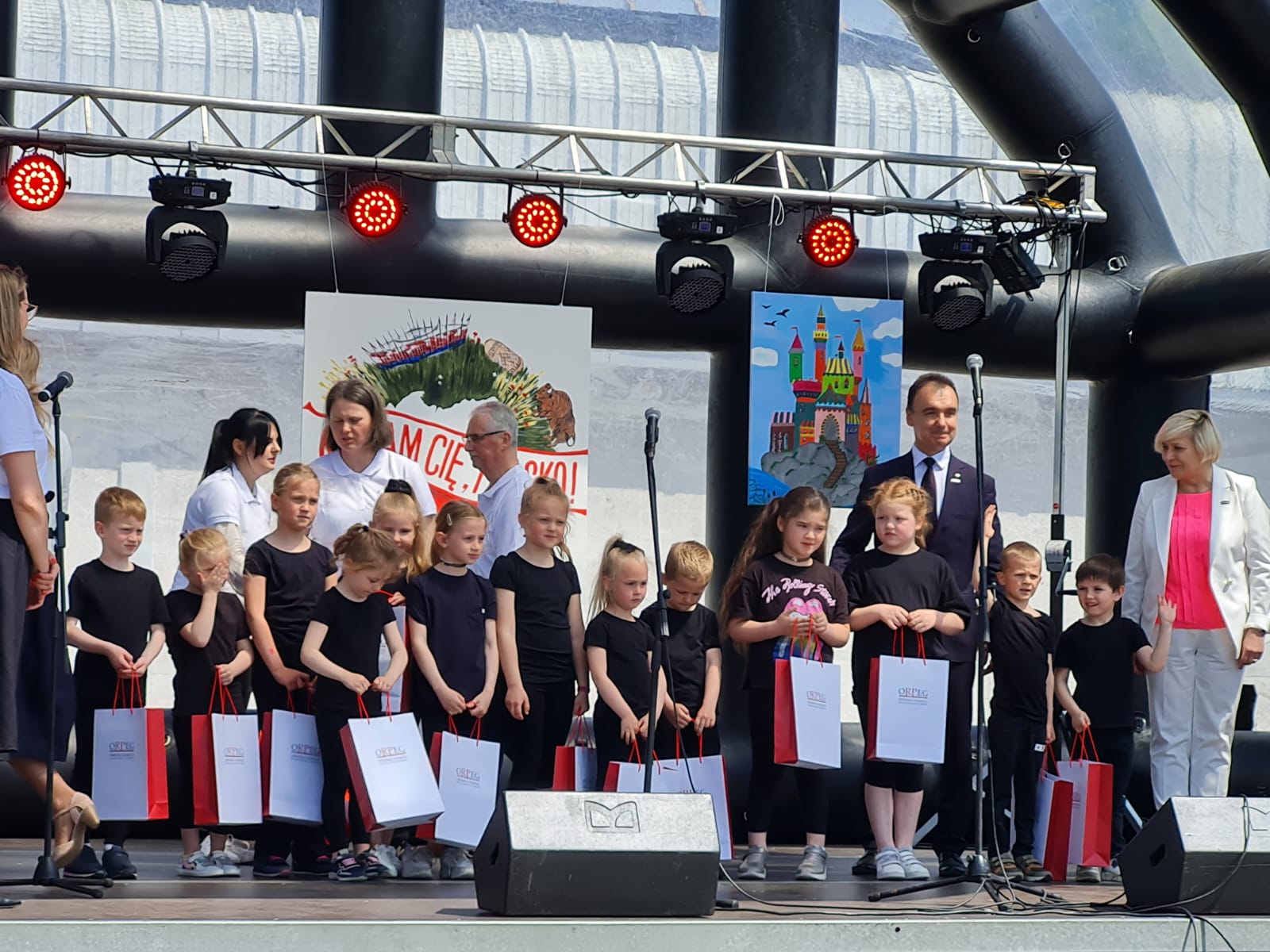 Centralny punkt wydarzenia stanowiła duża scena, na której w krótkiej oficjalnej części wystąpili nasi dostojni goście. Ponownie Ambasador RP w Królestwie Belgii, Jego Ekscelencja Rafał Siemianowski, Dyrektor Departamentu Współpracy z Zagranicą MEN, Pan Piotr Semeniuk oraz Wicedyrektor ORPEG, Pani Barbara Talik.