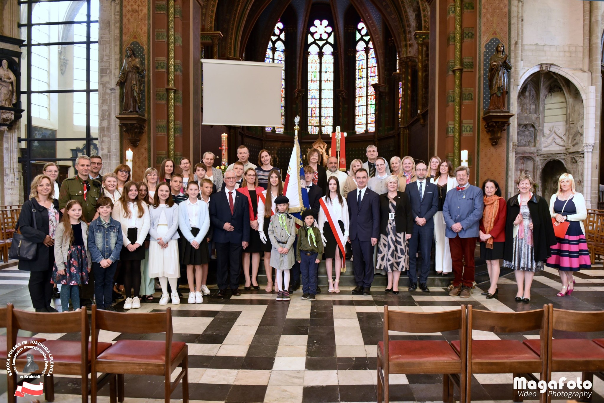 Jubileuszowe uroczystości rozpoczęły się 26 maja w kościele Notre Dame de la Chapelle w Brukseli, której przewodniczył i Słowo Boże wygłosił Ojciec Andrzej Lachowski OMI. W oprawie mszy św. wzięli również uczniowie naszej Szkoły. Obecny był też Poczet Sztandarowy.